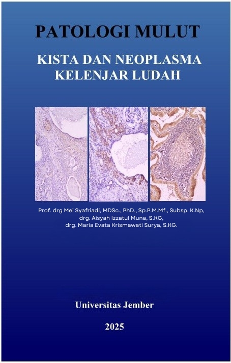 Tujuan dari penulisan ini adalah memberikan sarana bagi mahasiswa Kedokteran Gigi, mahasiswa Program Pendidikan Dokter Gigi Spesialis, Dokter Gigi, Dokter Gigi Spesialis ataupun tenaga kesehatan lainnya untuk mengenali kelainan-kelainan di dalam rongga mulut yang menyangkut Kista dan Neoplasma Kelenjar Ludah baik. Buku ini disusun berdasarkan pengalaman penulis di bidang riset riset, jurnal serta buku teks lainnya mengikuti perkembangan penyakit yang makin kompleks dan membutuhkan pengetahuan dan keterampilan yang holistik. Buku referensi ini dibuat ringkas dan padat supaya mudah dipahami dan menjadi buku pegangan mahasiswa Kedokteran Gigi, mahasiswa Program Pendidikan Dokter Gigi Spesialis, Dokter Gigi, Dokter Gigi Spesialis ataupun tenaga kesehatan lainnya dalam proses belajar dan mengajar maupun sebagai praktisi